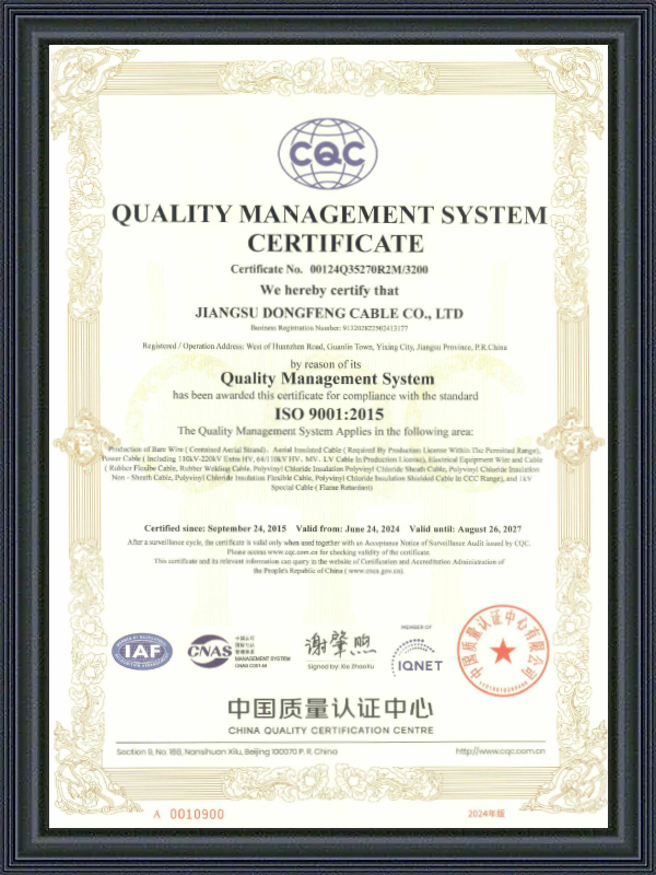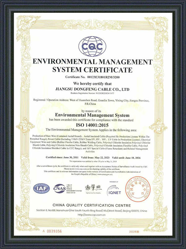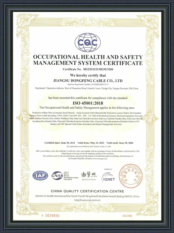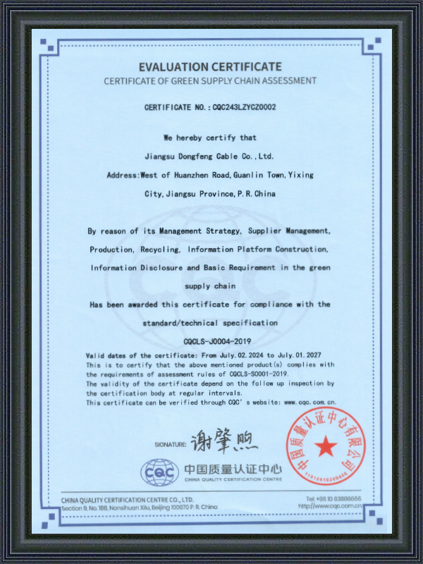 Ang Jiangsu Dongfeng Cable Co., Ltd. ay itinatag noong 1988. Bilang Tsina Mga Tagagawa ng Special Cables at Pabrika ng High-temperature Resistant Special Cables ay isang pambansang high-tech enterprise na nagsasama-sama ng R&D, produksyon, at pagbebenta ng iba't ibang uri ng mga wires at cables. Ito ay niraranggo bilang isang ‘National Green Factory’, ‘Jiangsu Province Specialised, Specialised, Innovative and New Enterprise’, ‘Jiangsu Province Quality and Integrity Enterprise’, ‘AAA Credit Enterprise’, at ‘National User Satisfaction Enterprise’. Nag-aalok kami ng Pasadyang High-temperature Resistant Special Cables.